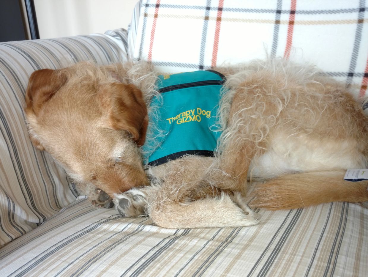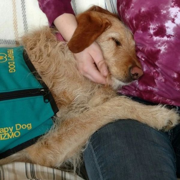 Gizmo was born on December 19, 2009, under the care of Leader Dogs for the Blind. She was raised and socialized for her first year by my mother, then went off to school and was matched with a blind person for work. Unfortunately, that match did not work out and several months later, Gizmo was removed from the placement. The school attempted to re-train her, but she failed due to a "small animal distraction." She was retired and offered to my mother as a pet, but she was clearly such a special and talented dog that we got her tested and accepted as a registered Therapy Dog. Soon, she was working in my counseling office regularly and it was more practical for her to live with me. Since 2014, Gizmo was a part of my family and was also trained as a service dog for my own PTSD symptoms. After working from home due to the pandemic, and reaching her golden years, Gizmo decided to be semi-retired. (This meant some days, particularly when it was raining, Gizmo stayed at home on the couch with her kitties instead of coming to work with Katie). A little bit of Gizmo always went home with clients... on their clothes. Gizmo's specialties in therapy were demonstrating relaxation and sleepiness, and providing opportunities for grounding and comfort. She brought these gifts to so many lives in her 13 years, and we are all grateful to have known her.